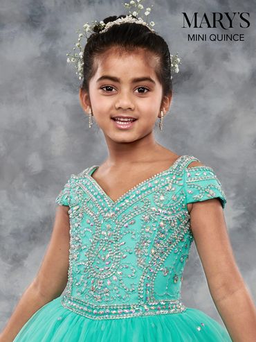 Description: Quinceanera ball gown features sweetheart neck line, satin bodice, satin skirt overlay, glitter tulle skirt, gold lace applique, detachable bow in the back, lace-up closure, and matching bolero jacket.Color: Burgundy/Gold, Royal/GoldSize: 0-20, 20W-30WFabric: Satin, Glitter Tulle, Applique, Sequin, Beading